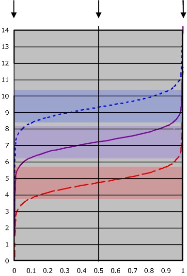 Die Abbildung zeigt Pufferungskurven der Säure-Basenpaare Essigsäure/Acetat, Dihydrogenphosphat/Hydrogenphosphat und Ammoniak/Ammoniumion. Beschriften Sie die Achsen der Pufferungskurve und bezeichnen Sie den pKa-Wert und den Pufferbereich.