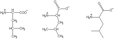 Alle drei Abbildungen stellen das gleiche Molekül dar, die Aminosäure Leucin.
