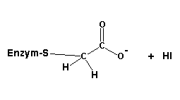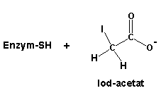 Iodacetat ist das Anion der Iodessigsäure. Iodessigsäure alkyliert irreversibel die SH-Gruppe von Proteinen (z.B. Glycerinaldehydphosphat-Dehydrogenase). Es kann dazu verwendet werden, Enzyme mit SH an der aktiven Stelle irreversibel zu inaktivieren.