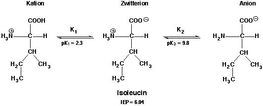 Isoleucin zeichnet sich durch die lipophile (hydrophobe) Seitenkette aus und gleicht darin den Aminosäuren Alanin, Valin und Leucin.