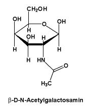 Das Blutgruppenantigens A enthält N-Acetylgalactosamin. Beim Blutgruppenantigen B findet sich stattdessen Galactose und bei der Blutgruppe 0 fehlt dieser Zuckerrest.