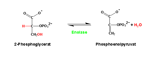 Enolase ist ein Enzym in der Glykolyse und katalysiert die folgende Reaktion.