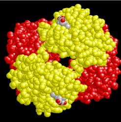 Hämoglobin liegt in hoher Konzentration (320 g/l) in den Erythrozyten vor und transportiert den Sauerstoff von der Lunge in die Gewebe. Adultes Hämoglobin ist ein (αβ)2 Tetramer mit Molekularmasse 68 000 Da und enthält 4 Hämgruppen. Hämoglobin enthält ungefähr zwei Drittel des Gesamtkörpereisens.