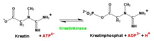 Bei ATP-Überschuss ermöglicht Kreatinkinase die Speicherung der chemischen Energie des ATP als energiereiches Kreatinphophat im Muskel.