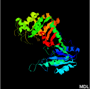 Klicken Sie auf die nebenstehende Abbildung um das 3D-Modell des Enzyms zu laden (140 KB) . Dies kann je nach Verbindung etwas Zeit beanspruchen.