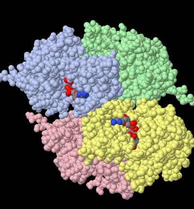 Klicken Sie auf die nebenstehende Abbildung, um das 3D-Modell des Enzyms zu laden (1020 KB). Dies kann - je nach Verbindung - etwas Zeit beanspruchen.