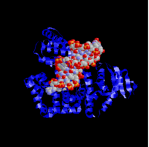 DNA-Polymerasen lenken den schrittweisen Aufbau einer DNA-Kette aus dATP, dCTP, dGTP und dTTP. Die Reihenfolge der Mononucleotidbausteine wird durch den komplementären elterlichen DNA-Strang bestimmt. Die DNA-Polymerisierung erfolgt durch einen nucleophilen Angriff der 3'-OH-Gruppe auf das alpha-Phosphor-Atom des Mononucleotids. Es kommt zur Ausbildung eines Phosphorsäurediesters. |